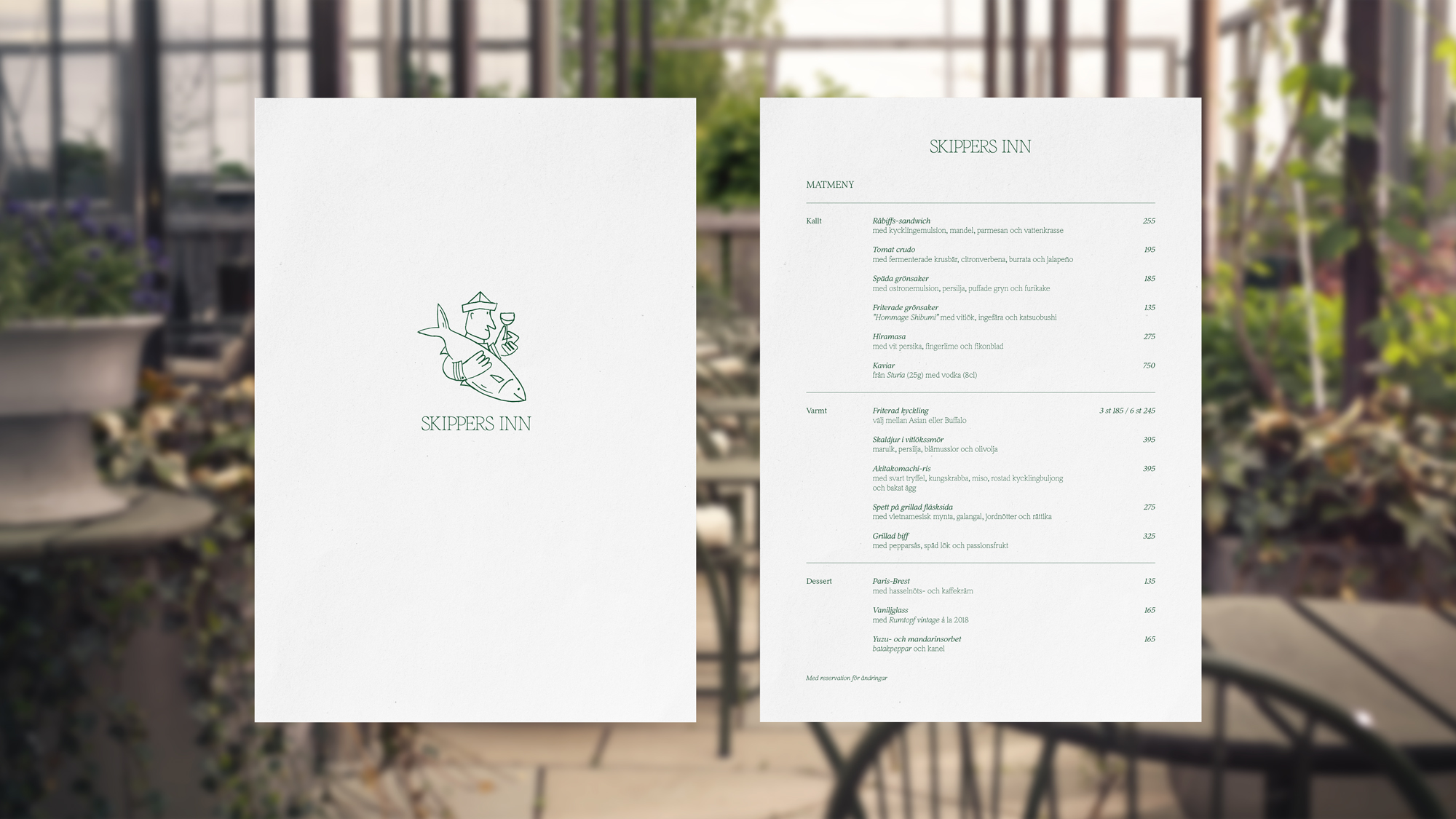 Create a communicative concept and brand identity for Skippers Inn – a summer pop-up restaurant located on the terrace of two Michelin Star-restaurant AIRA in Stockholm.